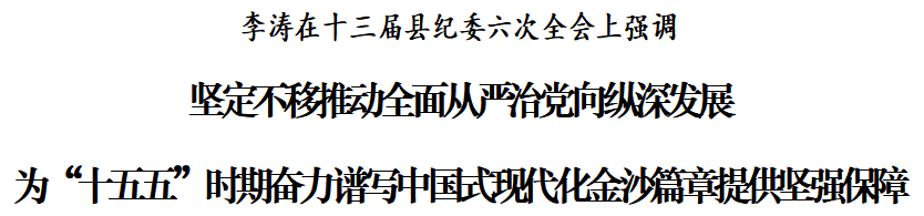 李涛指出,习近平总书记在二十届中央纪委五次全会上的重要讲话,为深入推进全面从严治党提供了根本遵循。十三届省纪委五次全会对深入推进全面从严治党和反腐败斗争作出了具体安排。三届市纪委六次全会为做好纪检监察工作明确了具体路径。全县上下要全面深学细悟,切实把思想和行动统一到党中央和省委、市委的决策部署上来,以永远在路上的坚定和执着,推动全面从严治党取得新的更大成效。