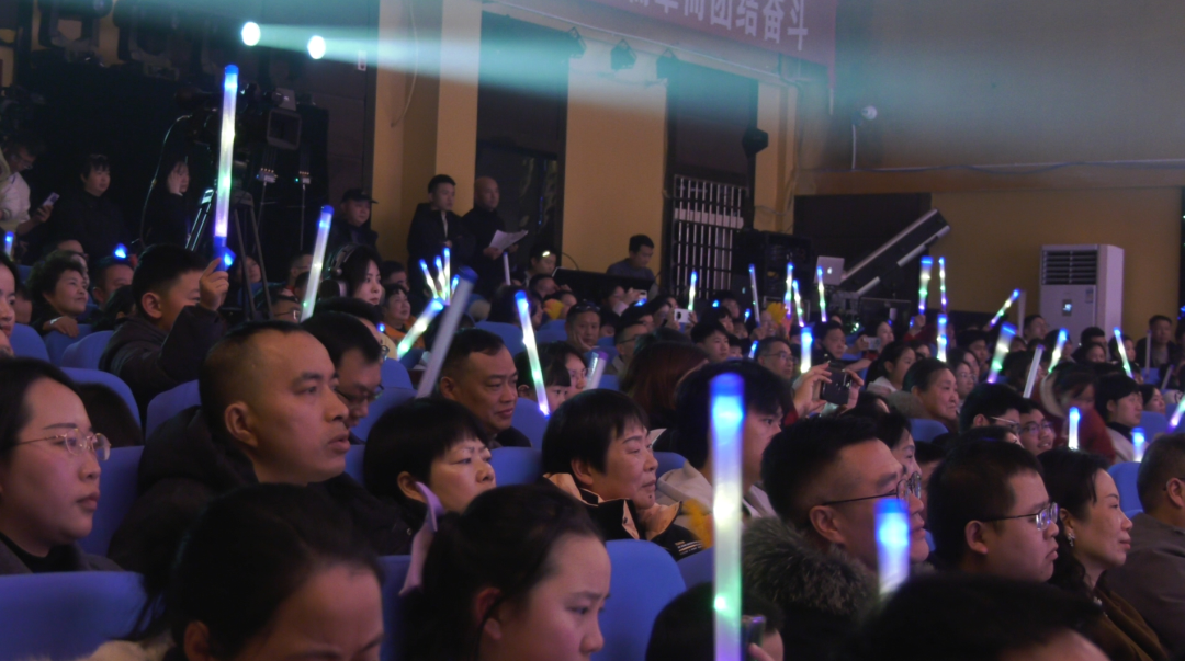 暮色四合时,金沙会堂的红灯笼次第亮起。会堂外,寒风在街巷徘徊;会堂内,暖意从舞台漫向最后一排座椅。大人牵着孩童,游子卸下背了一年的行囊,一家人挨着坐,满场都是“回来了”的轻声问候。