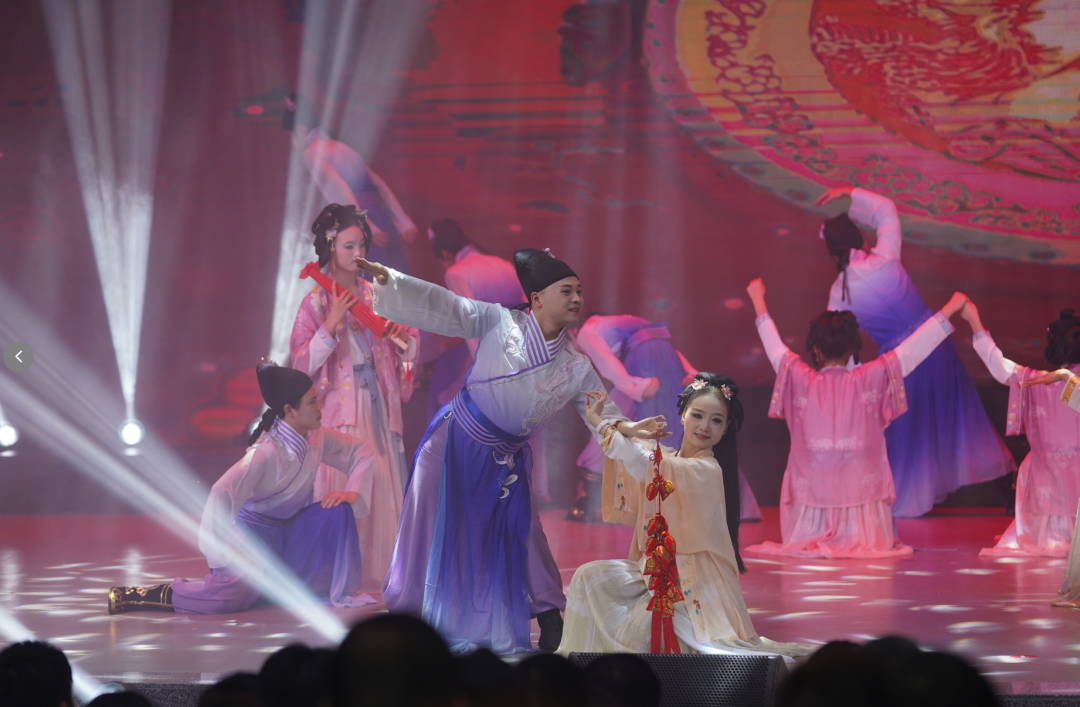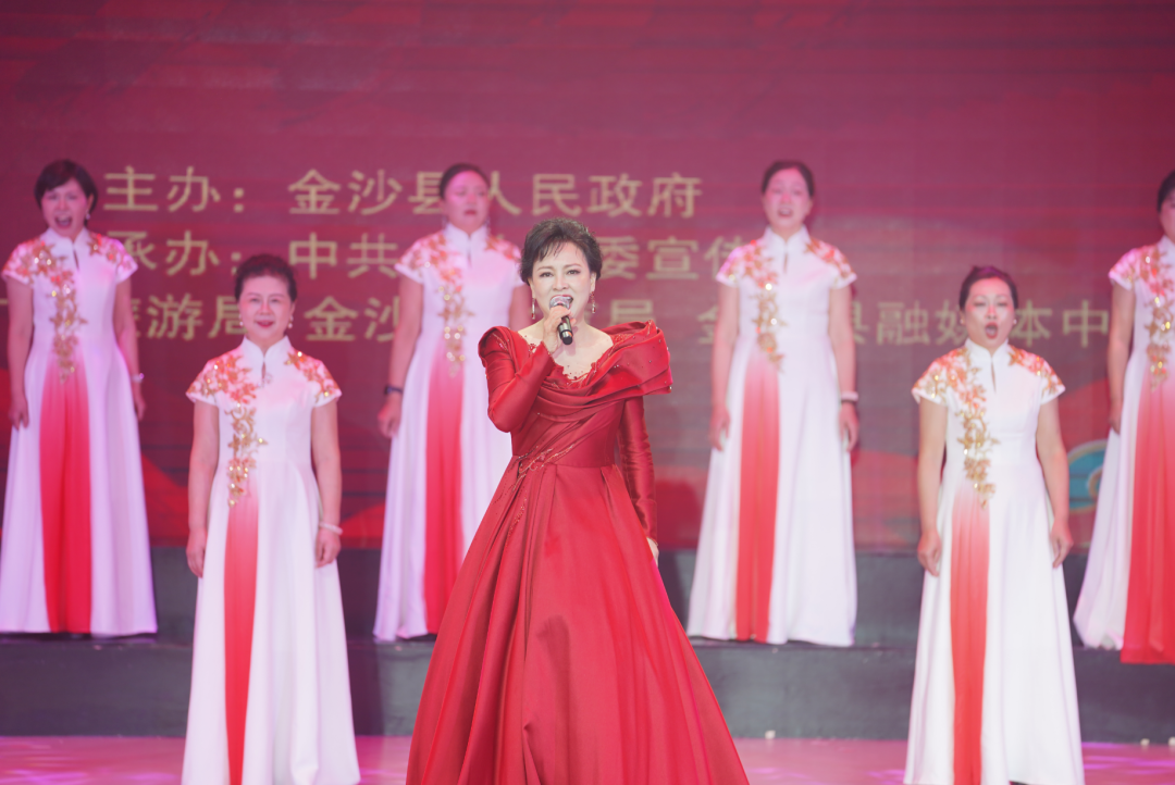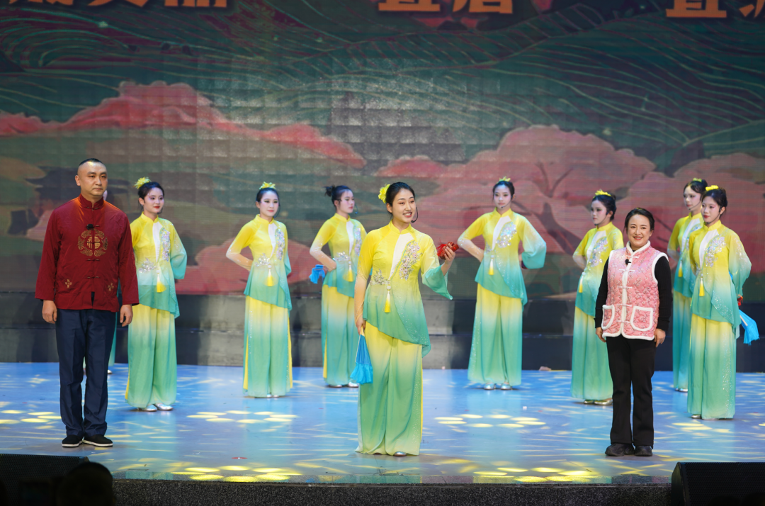 女子群舞《二十四节气》舒展如水,水袖轻扬间,春种、夏长、秋收、冬藏一一流转。音乐快板《产业花开富金沙》从乡村产业旺、移民生活甜的小切口,道出金沙发展的大变迁。
