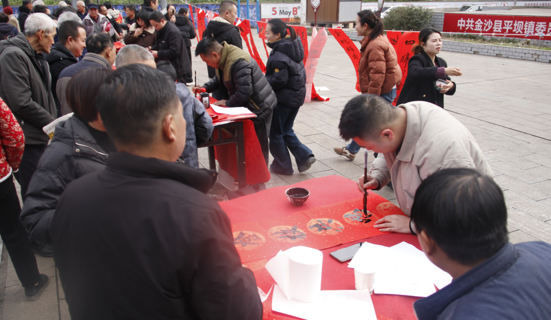 据统计,当天共书写送出春联、福字数百副,惠及平坝镇及周边村民。集散时,暮色初临,有人骑着摩托载着年货和红春联往村里去——年的味道,从集市一路飘进了家门。