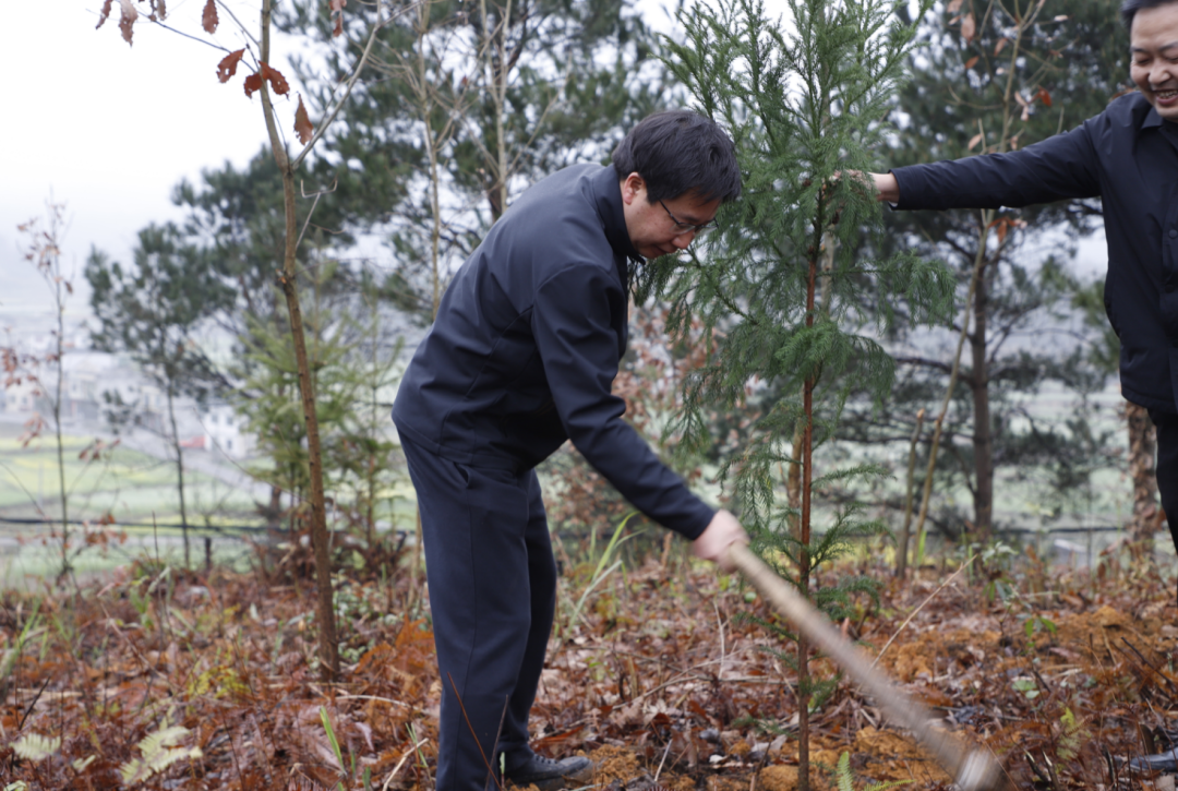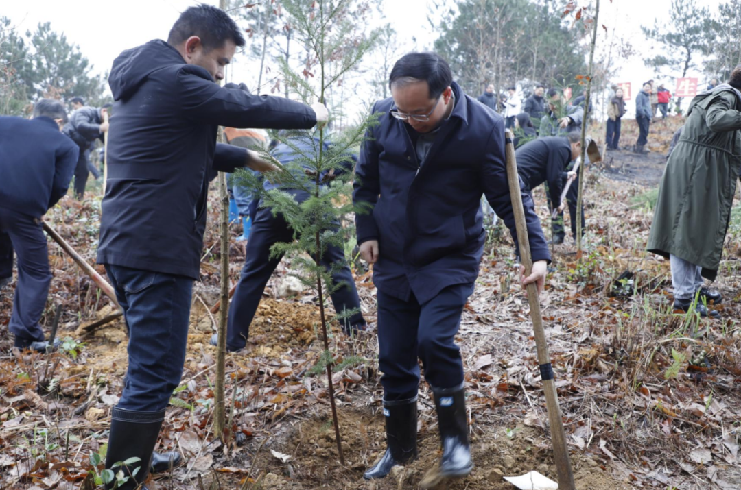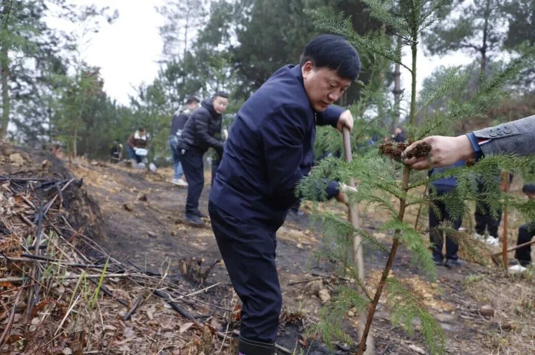 县委书记李涛,县委副书记、县长张铭,县人大常委会主任魏其凯,县政协主席赵福美,县委副书记黄健、欧阳成作,县委常委,县人大常委会、县政府、县政协领导班子成员,法检“两长”,经开区领导班子成员,冷水河风景区党工委书记、管委会主任及县直单位部门、西洛街道的干部职工200余人在西洛街道开化社区凤凰山植树点参加义务植树活动。植树现场,大家三五人一组,分工协作,挥锹铲土、扶苗填坑、提水浇灌,每一道工序都一丝不苟。