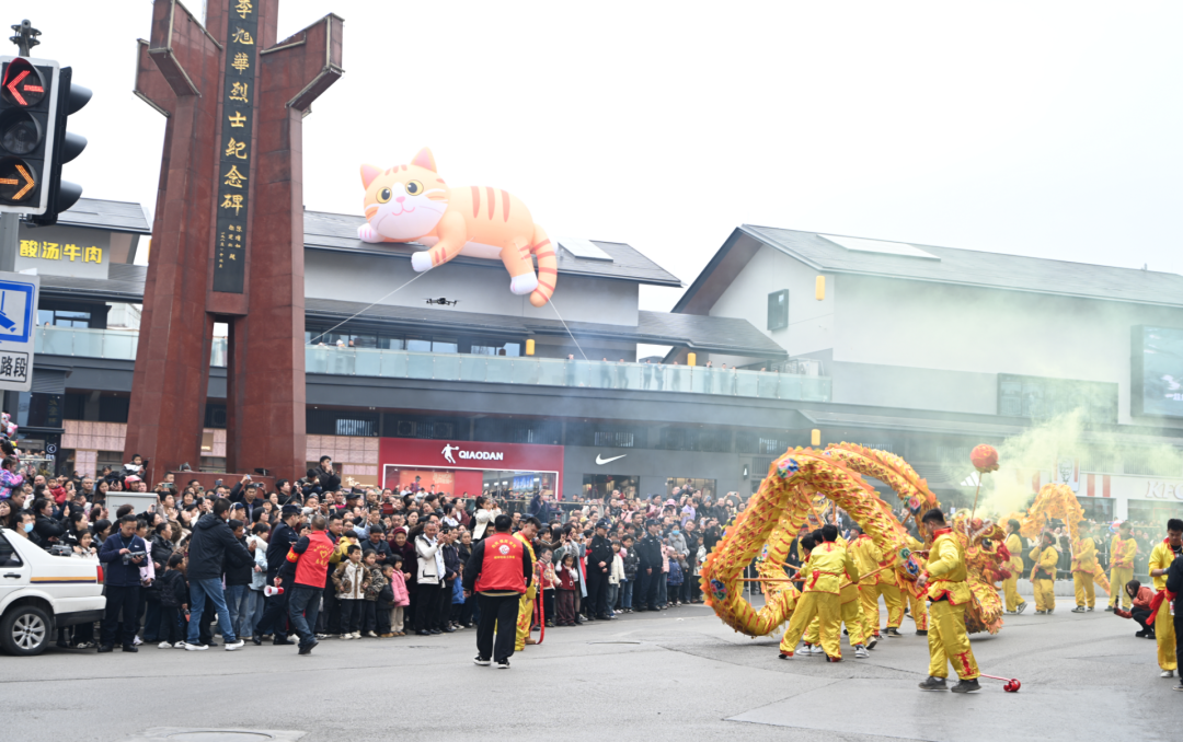 当巡游队伍行至中华桥转盘表演区时,本土歌手登台献唱,群龙绕车欢舞,歌声、鼓声、欢呼声交织成一曲震撼人心的新春交响。沿途市民纷纷驻足,拍照记录,共享欢乐。巡游队伍最终抵达城市新地标长安里商圈,传统民俗与现代商业在此交融,让市民在赏民俗、品年味的同时,真切感受到城市发展的脉搏与美好生活质感。