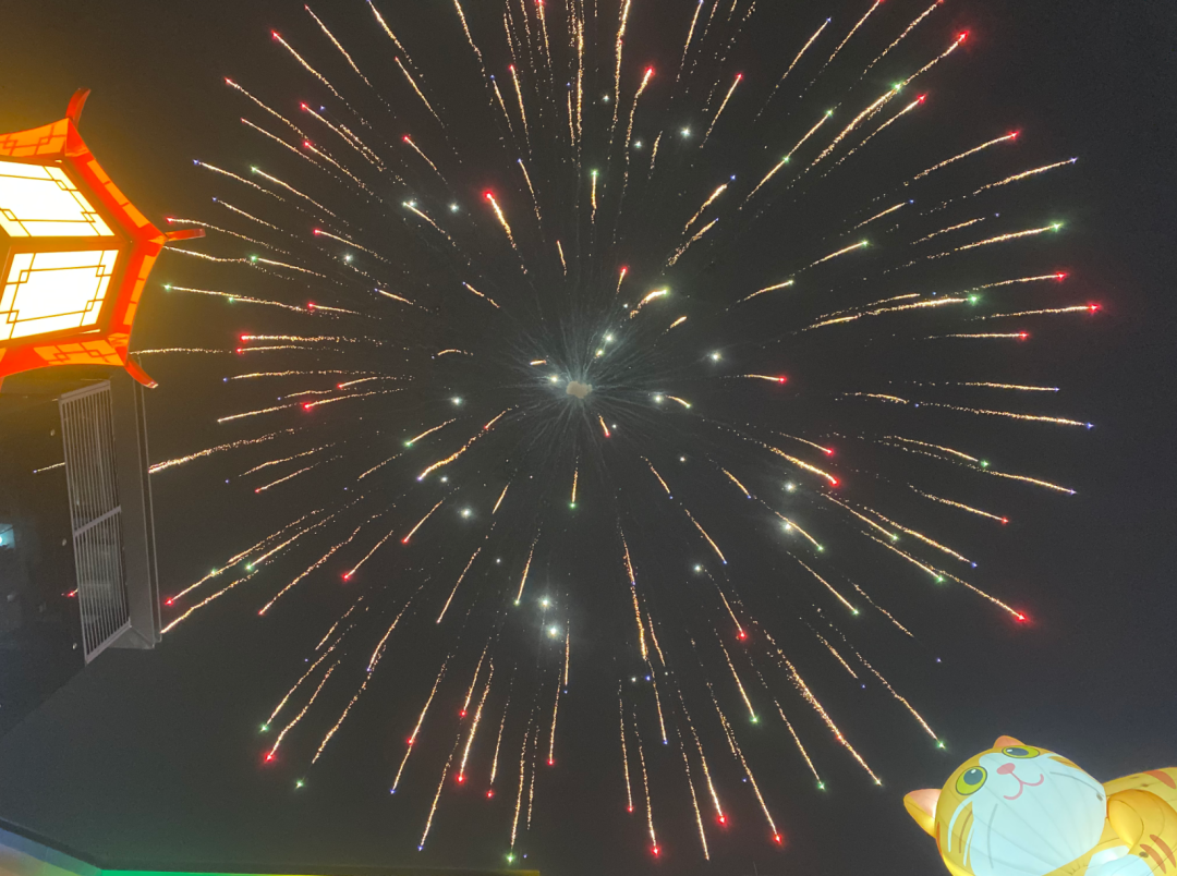 随后进行的烟花秀将活动推向高潮。各色礼花在夜空中绽放,宛如繁星洒落,与地面上流动的光影交织,将夜晚装点得绚丽多彩。